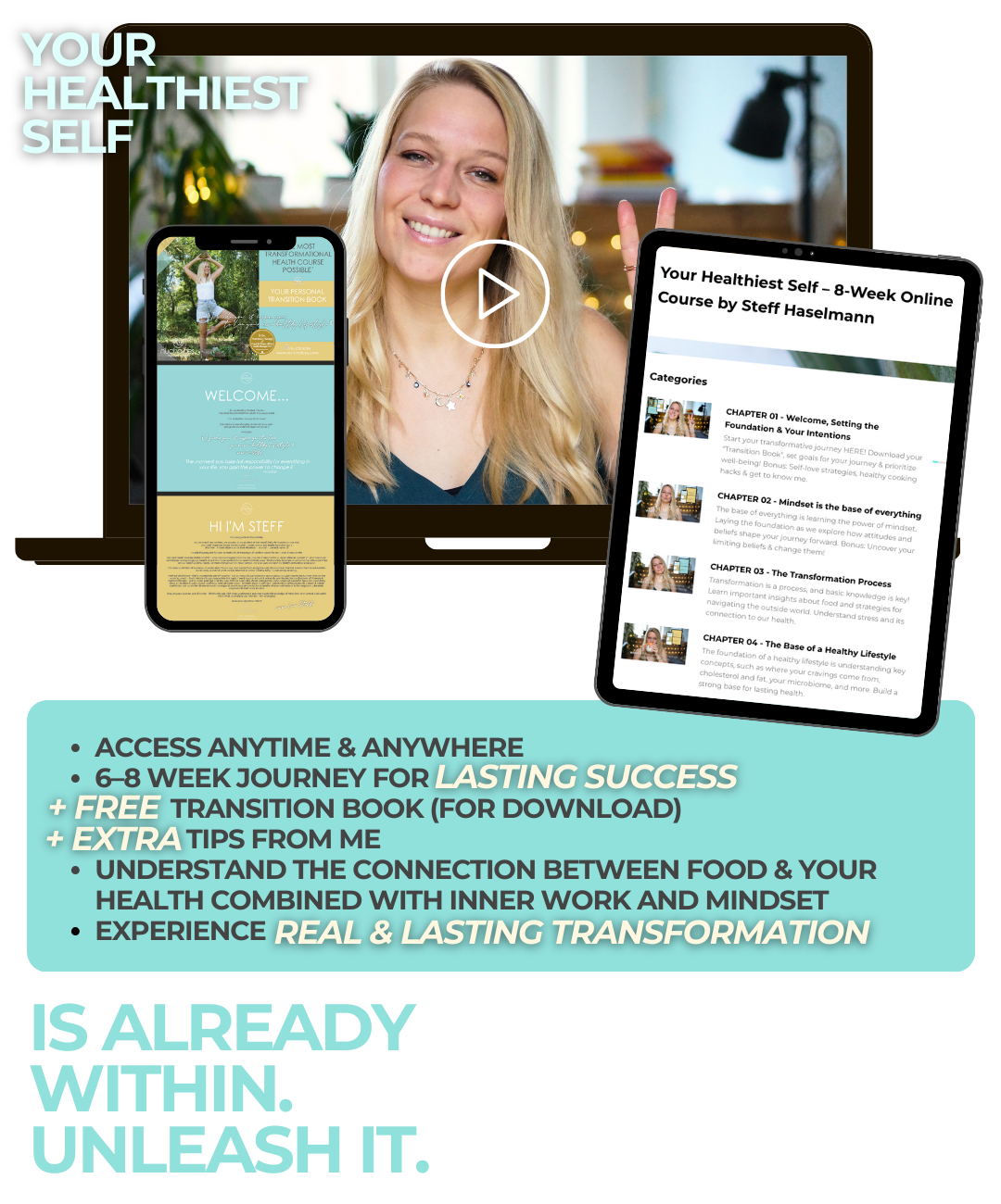 “Steff’s course completely shifted how I approach my health. I finally feel energized, confident, and in tune with my body - without guilt, extremes, or overwhelm. Before this course, I was stuck in the same old cycles. Now, I feel clear, empowered, and truly living my healthiest self every day. Thank you Steff!”